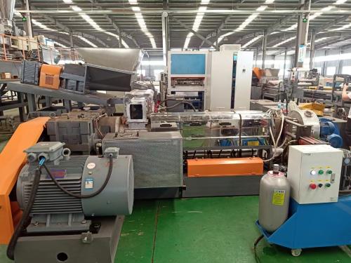 PVC料耐溫等級最重要的指標(biāo)。PVC電纜料除熱老化外,電纜料造粒機_電纜料生產(chǎn)線熱失重也是一項重要的溫度等級評定指標(biāo)。它的好壞可說明某溫度等級的PVC電纜料中所用的原材料是否適用于該溫度等級。若失重量過大則說明材料在使用溫度下析出揮發(fā),材料易變硬變脆而失去原有性能。如果的PVC只能滿足70℃PVC料的失重量要求,那么談及熱穩(wěn)定時間——耐熱、耐高溫的能力穩(wěn)定時間差,材料在高溫加工時容易產(chǎn)生焦料,擠出時容易產(chǎn)生氣泡,材料經(jīng)過擠出后老化性能嚴重變差。電纜料造粒機_電纜料生產(chǎn)線 比重:標(biāo)準(zhǔn)無統(tǒng)一明確規(guī)定的指標(biāo),它與產(chǎn)品的質(zhì)量和成本密切相關(guān)適宜的填充是為了使PVC電纜料獲得標(biāo)準(zhǔn)或客戶所要求的性能。電纜料造粒機_電纜料生產(chǎn)線過度的填充則是為了降低成本,同時會使材料機械性能等嚴重下降、容易撕裂、電纜容易開裂。 70℃、9及的區(qū)別——最重要的性能區(qū)別為熱老化、熱失重要求不同。電纜料造粒機;高混機----螺旋自動上料機------雙螺桿造粒機----------單螺桿造粒機--------對吹熱切機頭-----一級旋風(fēng)分離器---------二級旋風(fēng)分離器-------加長風(fēng)冷振動篩------成品料;咨詢