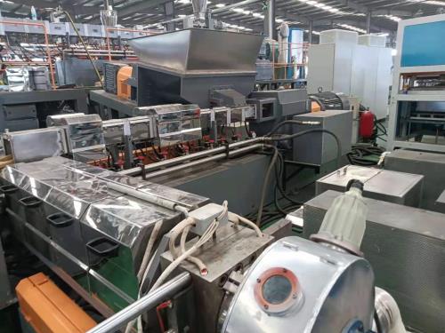 電纜料顆粒生產(chǎn)線_電纜料顆粒生產(chǎn)線_佳德塑機,有好多廠家生產(chǎn)的PVC電纜料在押出線是會出現(xiàn);表面沒有亮度;表面有細小疙瘩;表面有魚鱗是;有的押出線線的切面有氣孔;出現(xiàn)以上問題就是生產(chǎn)PVC料的機器沒有調好;也有是做PVC料的機器沒有選好;現(xiàn)在做PVC電纜料機器最好的就選用雙階造粒機組;例如65︳150雙階造粒機組技術指標65雙螺桿要*經(jīng)比32;1150單螺桿*徑比要求在7;1 螺桿心部要通冷卻水----液壓板式換網(wǎng)-----機頭要用推拉對吹式機頭;用這樣機頭就是做彈性體PVC都不會有粘?,F(xiàn)象-----風冷磨面切粒------第一段旋風分離器-----第二段旋風分離器------加*振動篩----料倉這種機器生產(chǎn)產(chǎn)量高;一天12噸;電纜料顆粒生產(chǎn)線塑化分散好;同向平行雙螺桿擠出機機構一、前言 近年來,隨著聚合物改性材料的不斷發(fā)展,其對混煉設備的要 求也越來越高。雙螺桿擠出機是連續(xù)混煉機中應用最多的一種設備,理所當然,也就受到大家的廣泛關注,圍繞它的研究也就越多。目前,根據(jù)國內外的發(fā)展趨勢,雙螺桿擠出機主要是向高速、大扭矩、大擠出量及低能耗轉方面發(fā)展。剖分式同向平行雙螺桿擠出機可快速打開機筒,進行物料清洗的高速大扭矩擠出機。 二、結構特點 剖分式同向平行雙螺桿擠出機的顯著特點即為:機筒可剖分式 同時,螺桿和機筒內襯套可隨意組合性。